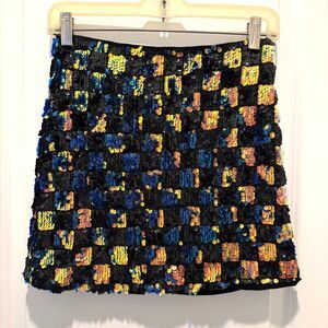 Forever 21 Iridescent Sequin Mini Skirt in a checkerboard pattern of square, reversible color sequins. Fully lined, back zipper. Size small