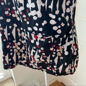 Grey’s Anatomy by BARCO scrub top. Black, white & cream printed V-neckline, pockets at hemline. Short sleeve.