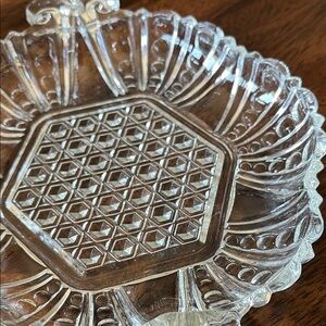 Elegant clear bowl with intricate design. Perfect for home decor.