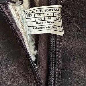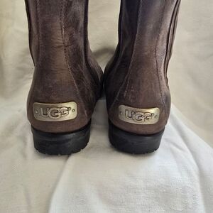 UGG Leather Moto Brown Boots Size 5. Stylish chocolate leather boots with a cozy interior. Pre-loved condition.
