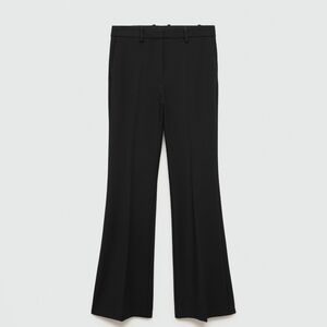 Mid-rise. Long design. Interior length 87.5 cm. Two side pockets. Two welt pockets at the back. Belt loops. Concealed button, hook and zip fastening. Bell design. Flare design.