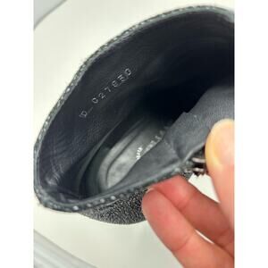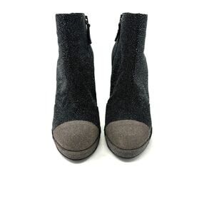 CHANEL Black Grey Glitter Leather Booties Size 37 CC Logo
