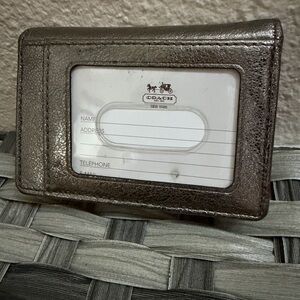 Coach Metallic Leather Bifold Wallet ID Window Bronze Gunmetal