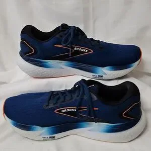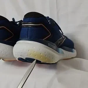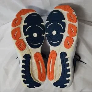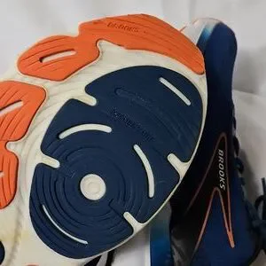 Super cushiony and comfortable shoe. Blue with orange accents.