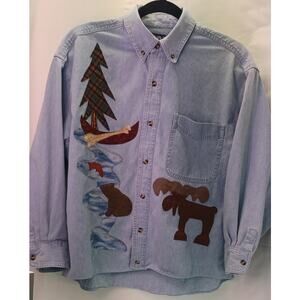 VTG 90s Copa Banana Denim Shirt Moose Bear Applique Medium Chambray Button Down