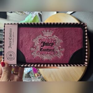 Stylish and elegant, this Juicy Couture wallet features a vibrant pink (raspberry tart) design with chocolate brown accents. Perfect for adding a touch of luxury to your everyday essentials.