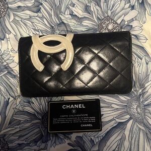 Chic Chanel wallet with iconic quilted pattern. Features elegant black and white design. Ideal for a touch of sophistication. I’m good condition can still be used just there is a few signs of wear! Please look at photos!