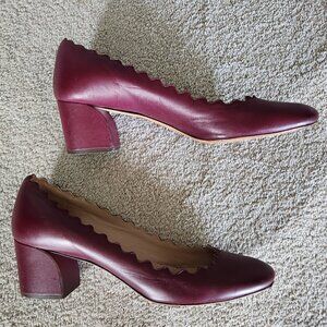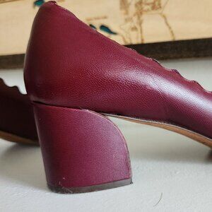 Chloe Lauren scalloped 2.25 heel all leather dark cherry shoes sz 36 1/2 US sz 6.5