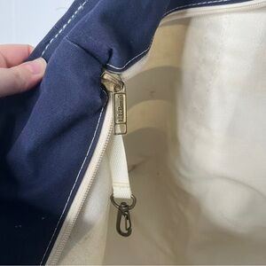 L.L. Bean cream and navy blue Boat and Tote bag with zip closure.