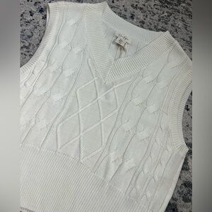 White v neck cable knit sleeveless sweater vest