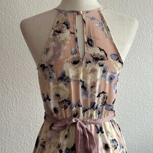 January 7 Floral High-Low Halter Dress with Waist Tie - Small