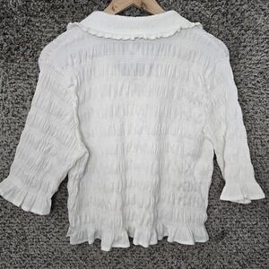 Maeve Anthropologie Top Womens XL Off White Smocked Button Front Blouse Ladies