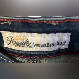 Royalty Wanna Betta Butt blue stretch denim Bermuda length shorts Sz 10