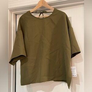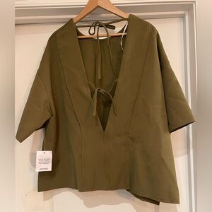 Arrange by ASOS boxy seamed Chic Olive Green Women's Top with black tie detail