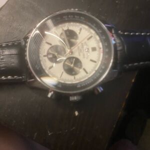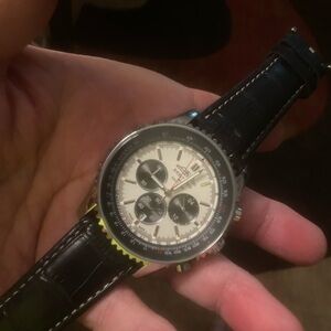 Elegant Breitling watch with a White dial and black leather strap. Ideal for any event.