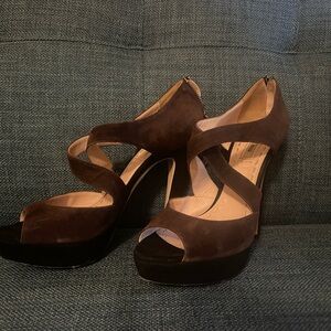 Chic dark brown heels with elegant straps. Perfect for a stylish look.