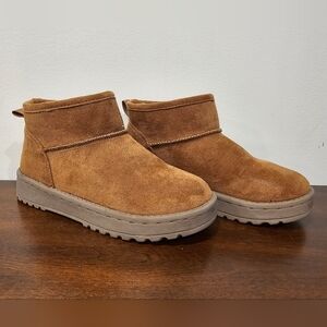These cozy brown kids shoes are perfect for everyday wear. Designed for comfort and style, they are a great addition to any child's wardrobe. Very gently used. One or two minor scuffs and in great condition! Faux fur lined ankle boots are perfect for cold Winter days! Size 13 little kids.