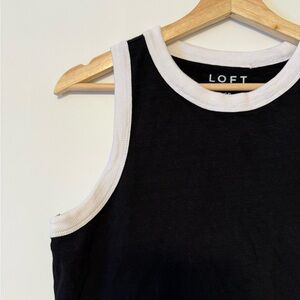 Sleek black tank top with contrasting white trim. Ideal for casual wear. Comfortable and stylish from LOFT.