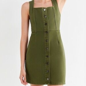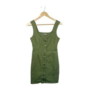 Urban Outfitters Denim Fitted Button Front Mini Dress in Army Green Size 4