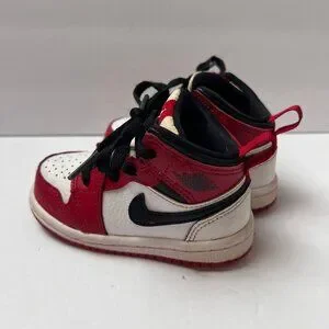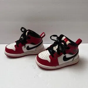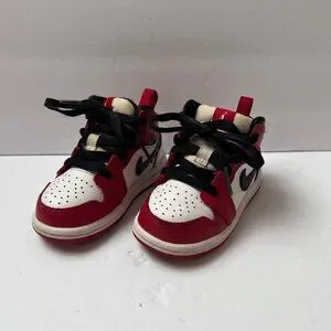 Kids Jordan 1 Red White with Black Swoosh Shoes Size 5C Black Laces