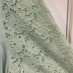 🧣Denim & Co. Mint Green Top w/ Lace 3/4 Length Sleeves Large Casual GUC
