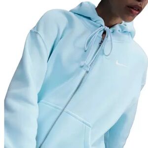 Nike hoodie with full-zip closure. Light blue color. Comfortable and stylish. Excellent condition with no noted flaws!