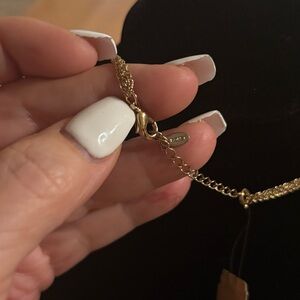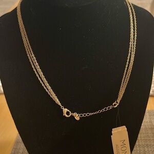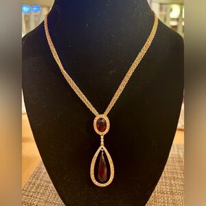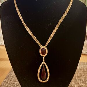 Monet NWT Vntg Gold Necklace Faceted Deep Ruby Red and Clear Rhinestones Accents