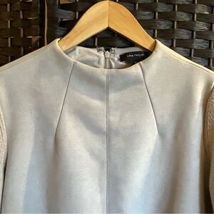Ann Taylor faux suede dress w/knit bell sleeves. Cream. Office, semi-formal. M