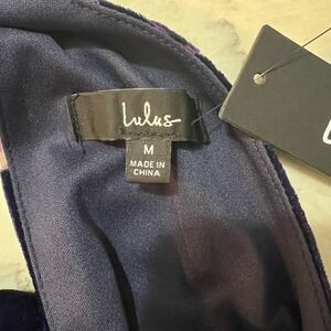 Lulus Velvet Floral Halter Midi Dress Slit Size Medium Navy Purple Pink