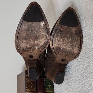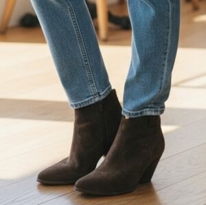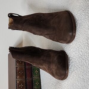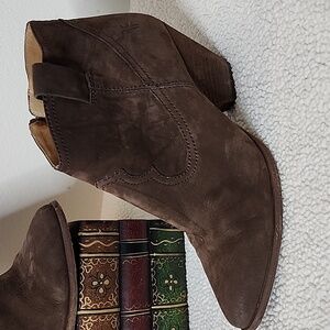 Frye Reina Dark Brown Suede Leather Ankle Boots Western Booties