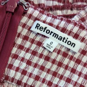 Reformation Gingham Print Halter Peplum Top Burgundy Red Cream - Size 0