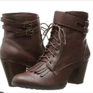Bella Vita Kody Leather Boots Victorian Tassel Buckle Ankle Booties Cognac Brown