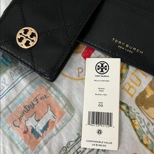 Tory Burch Black Quilted Card Holder with Gold Logo