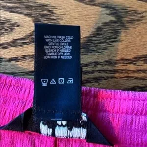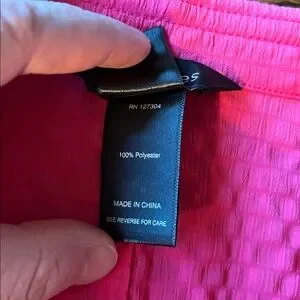 Ali Miles 3/4 sleeve woven button-front blouse in a deep or rich pink color. It features a crinkle or textured fabrication, a collar, and unique fancy black buttons as closures.