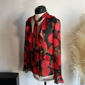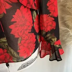 KEEPSAKE sheer red floral dark romance tie neck blouse