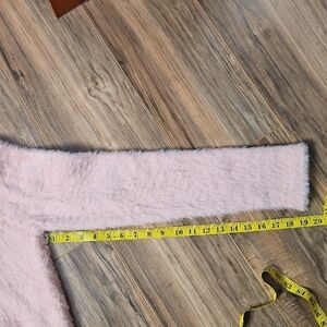 Pastel light pink, My photos sadly have no professional lighting and shows to have a peach color but it is a light pastel pink color. Look at the up close photos for more accurate coloring. Nylon material that's cozy inside and out. Extra long sleeves with a sit at waist style depending on your size. See above for other measurements. T16