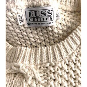 Vintage Russ Ivory Short Cap Sleeve Chunky Cable Knit Sweater Vest PM USA