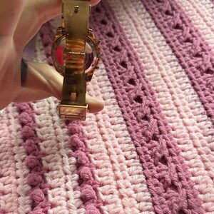 Chic two-tone watch with crystal accents. Perfect for adding sparkle to your look. Gold/ Rosegold in excellent working condition come with a pouch. See pictures and videos and you will be able to see that is working. Preowned