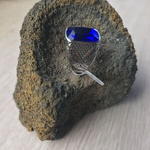 This elegant ring features a stunning blue gemstone, perfect for adding a touch of sophistication to any outfit.