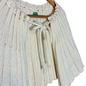 Benetton Made in Italy 100% wool shawl tie cape ivory