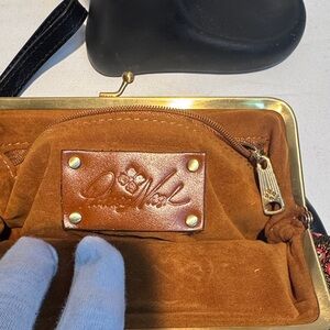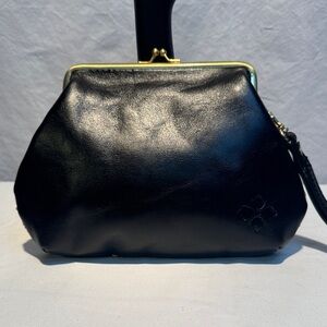 Patricia Nash Black and Red Leather Patchwork Wristlet