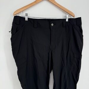 Duluth Trading Co black utility pants with side pockets and elastic waist