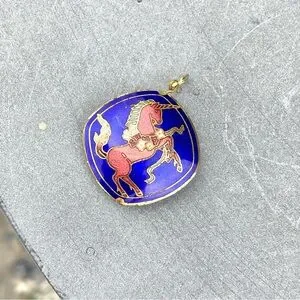 VINTAGE Enamel Unicorn Renaissance Pendant Lucky Charm Cloisonné Colorful
