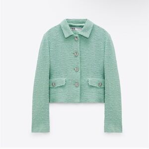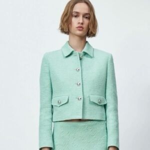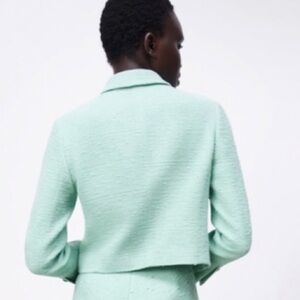 Zara Light Green Cropped Tweed Blazer. Size M. Mint Green. Chanel Inspired.