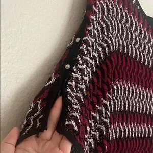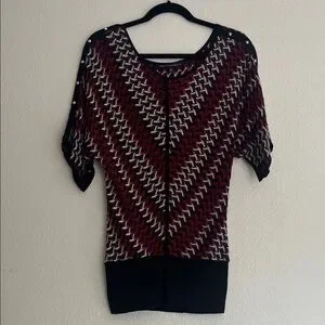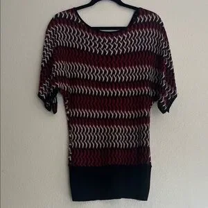 WHBM Crochet Sweater Red and Black Chevron Striped Batwing, Small