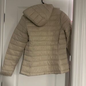 Lightweight puffer jacket. Full zip closure. Hooded design. Ideal for cold weather.