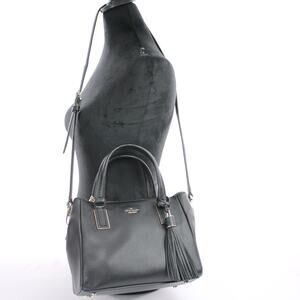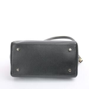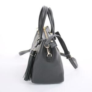 Black Pebbled Leather With Gold Logo And Tassel Detail.