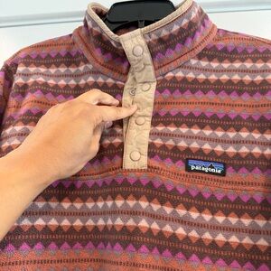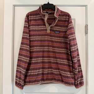 Patagonia Women’s Micro-D Snap-T Fleece in Pink Diamond Stripe Sisu Brown sz XL