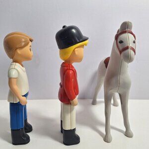Ever dreamt of owning a racehorse without all the hay or vet bills? Problem solved! This charming vintage Little Tikes set features one stylish gray horse (complete with saddle) and two ambitious jockeys ready to gallop into imagination land. Spotted horse? Check. Freckle-faced riders? Double check. It’s like an equestrian drama in toy form!