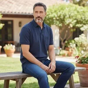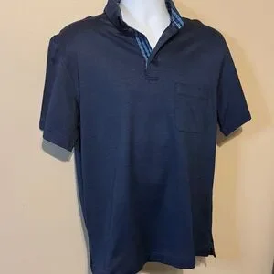 Elegant dark blue polo with a chest pocket. Ideal for casual wear. New Without Tags. Blue plaid trim